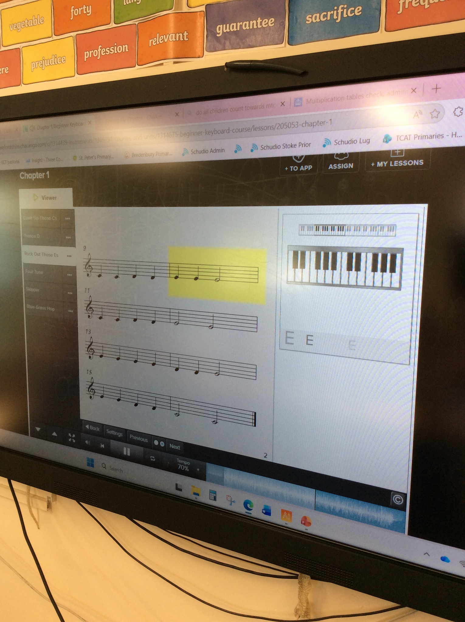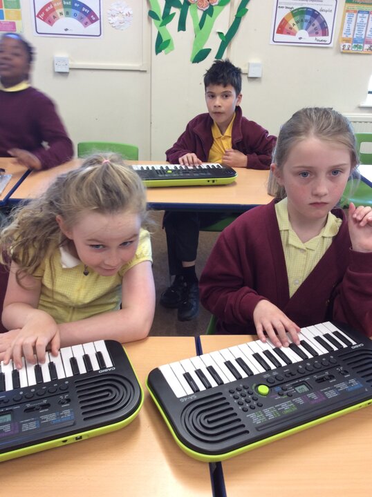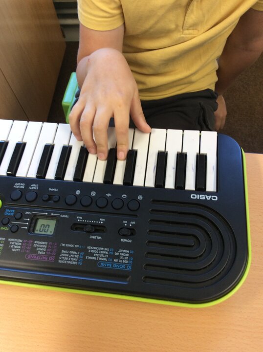This term, class 2 are learning to play the keyboard in music lessons. They have learned about posture and hand positioning, and they're learning to read music too. So far, they have learned the notes C,D,E AND F. Have a look at our class page to hear them playing 'Going down the stairs.' The concentration is fabulous and they sound great too!